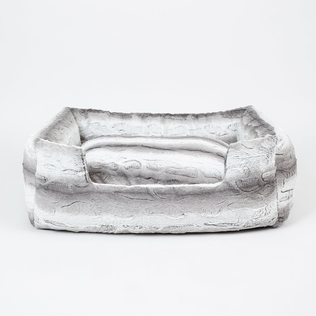 Your large fur baby isn't just a pet, they're royalty! Treat your pup like the king and queen with our new Big Baby Collection by Hello Doggie. This collections offers your pooch their own luxurious bed, where they can snooze away in comfort with plenty of room to stretch out and relax. Made from soft plush fabric and 100% poly-fiber fill, this bed features a non slip floor to hold the bed in place and a removable pillow for easy care. Wash on gentle cycle, no fabric softener or bleach. Air dry or tumble on low.   One Size   - For dogs up to 50 - 70 lbs  Outside - 37" L x 30" W x 10" H   |   Inside - 25" L x 21" W x 6" H |    Bolster - 6"in MSRP - $286.00 *Bed is handmade in the USA and sizes may vary slightly. Made in USA.