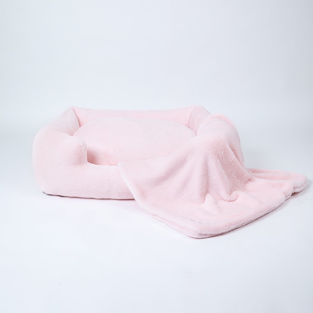 Your large fur baby isn't just a pet, they're royalty! Treat your pup like the king and queen with our new Big Baby Collection by Hello Doggie. This collections offers your pooch their own luxurious bed, where they can snooze away in comfort with plenty of room to stretch out and relax. Made from soft plush fabric and 100% poly-fiber fill, this bed features a non slip floor to hold the bed in place and a removable pillow for easy care. Wash on gentle cycle, no fabric softener or bleach. Air dry or tumble on low.   One Size   - For dogs up to 50 - 70 lbs  Outside - 37" L x 30" W x 10" H   |   Inside - 25" L x 21" W x 6" H |    Bolster - 6"in MSRP - $286.00 *Bed is handmade in the USA and sizes may vary slightly. Made in USA.