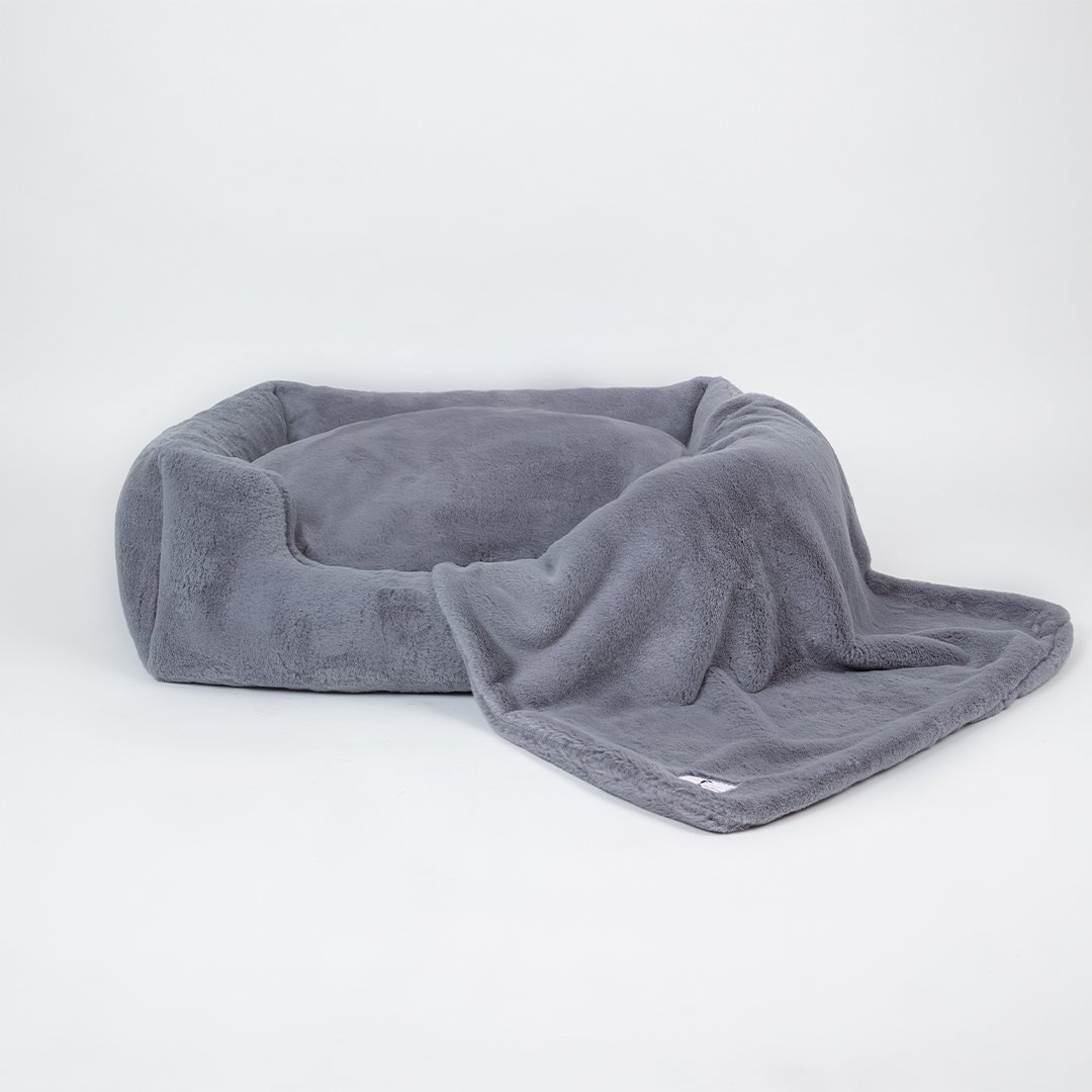 Your large fur baby isn't just a pet, they're royalty! Treat your pup like the king and queen with our new Big Baby Collection by Hello Doggie. This collections offers your pooch their own luxurious bed, where they can snooze away in comfort with plenty of room to stretch out and relax. Made from soft plush fabric and 100% poly-fiber fill, this bed features a non slip floor to hold the bed in place and a removable pillow for easy care. Wash on gentle cycle, no fabric softener or bleach. Air dry or tumble on low.   One Size   - For dogs up to 50 - 70 lbs  Outside - 37" L x 30" W x 10" H   |   Inside - 25" L x 21" W x 6" H |    Bolster - 6"in MSRP - $286.00 *Bed is handmade in the USA and sizes may vary slightly. Made in USA.